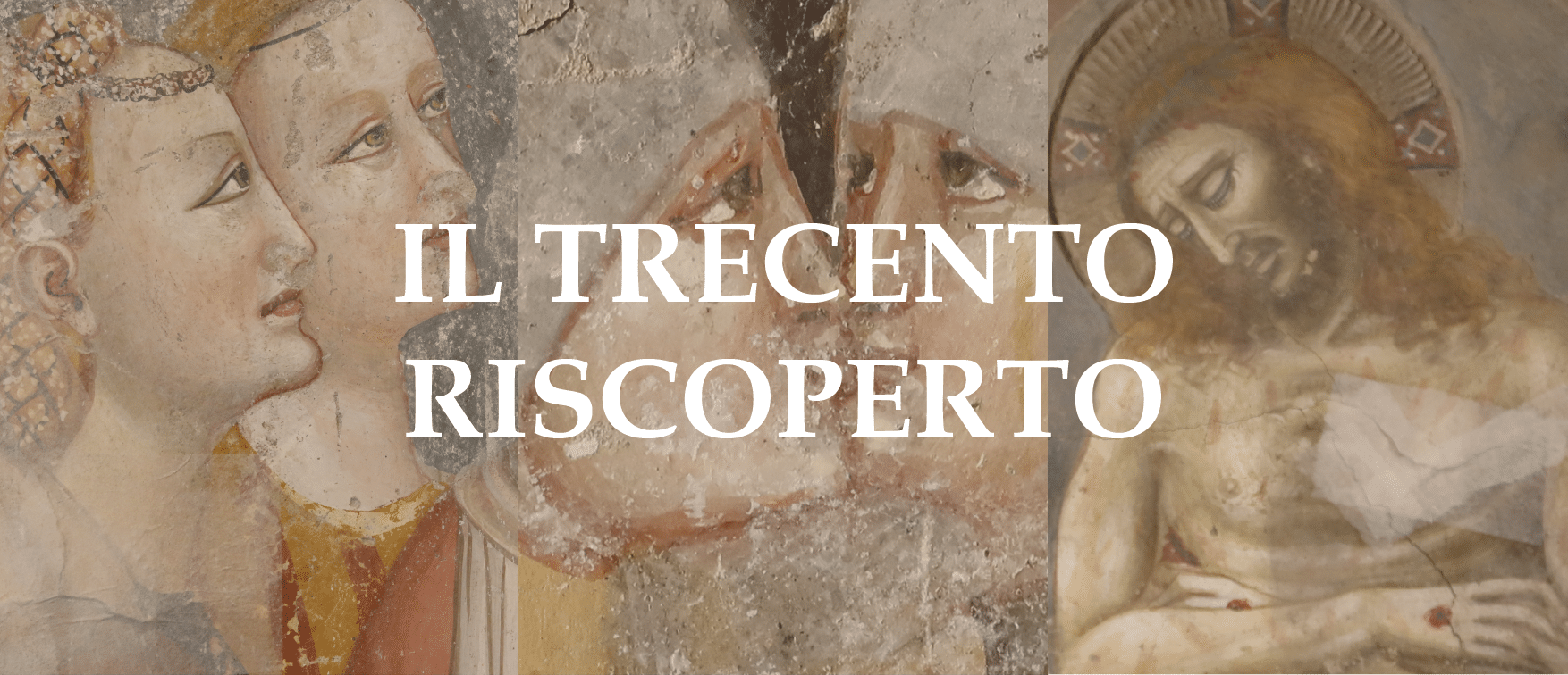 Celati nell’abside della Chiesa, dietro all’antico coro ligneo, emergono dei frammenti di affreschi, complesse narrazioni, incorniciate da sofisticati decori geometrici, che, come in uno specchio e in forma di enigma sembrano riferirsi al mistero della Croce, che intesse i momenti fondamentali della vita di Francesco.